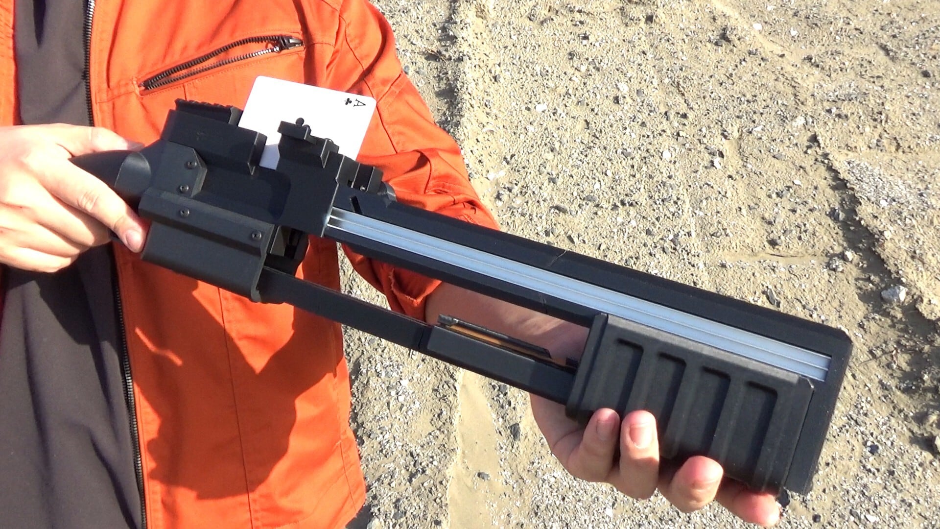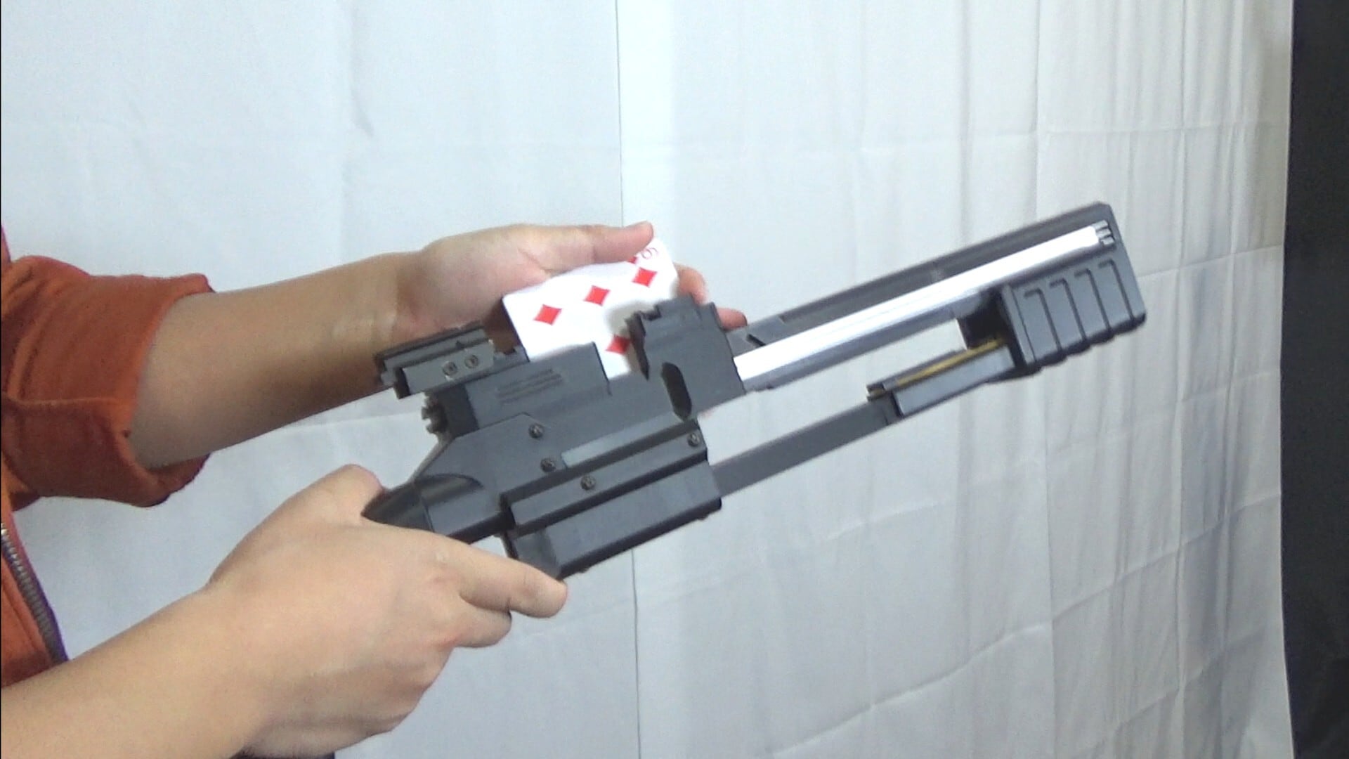 ポンプアクション式の連発カードガンです。